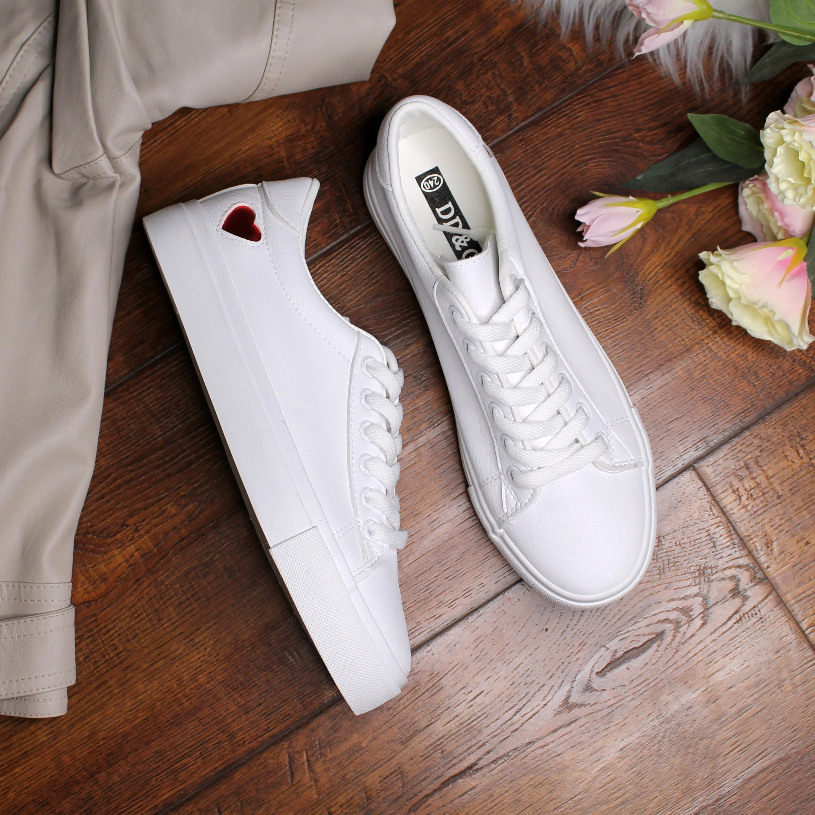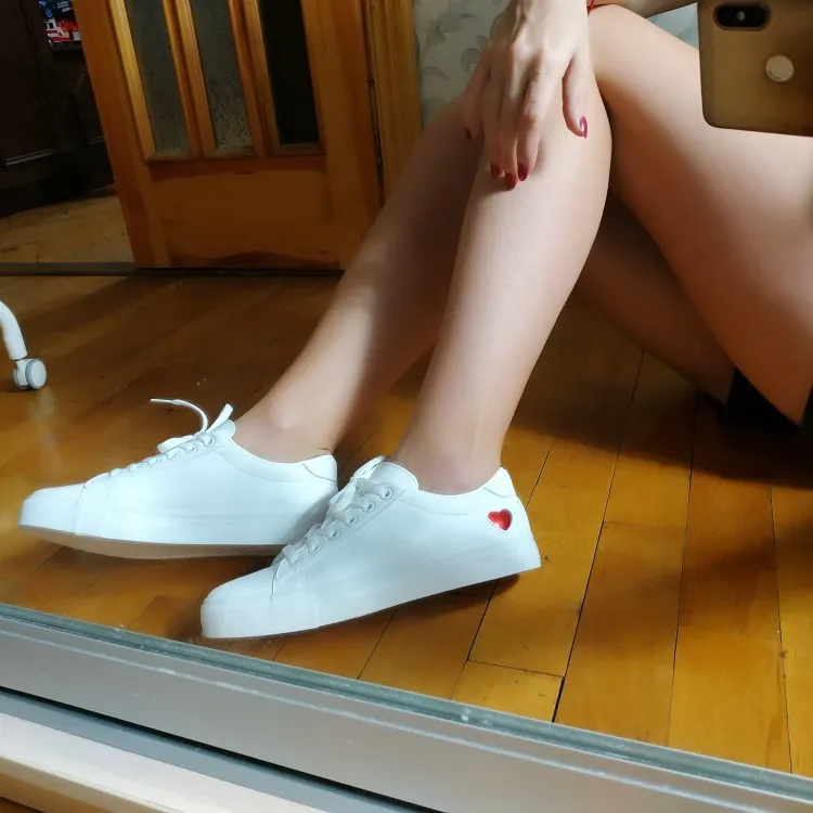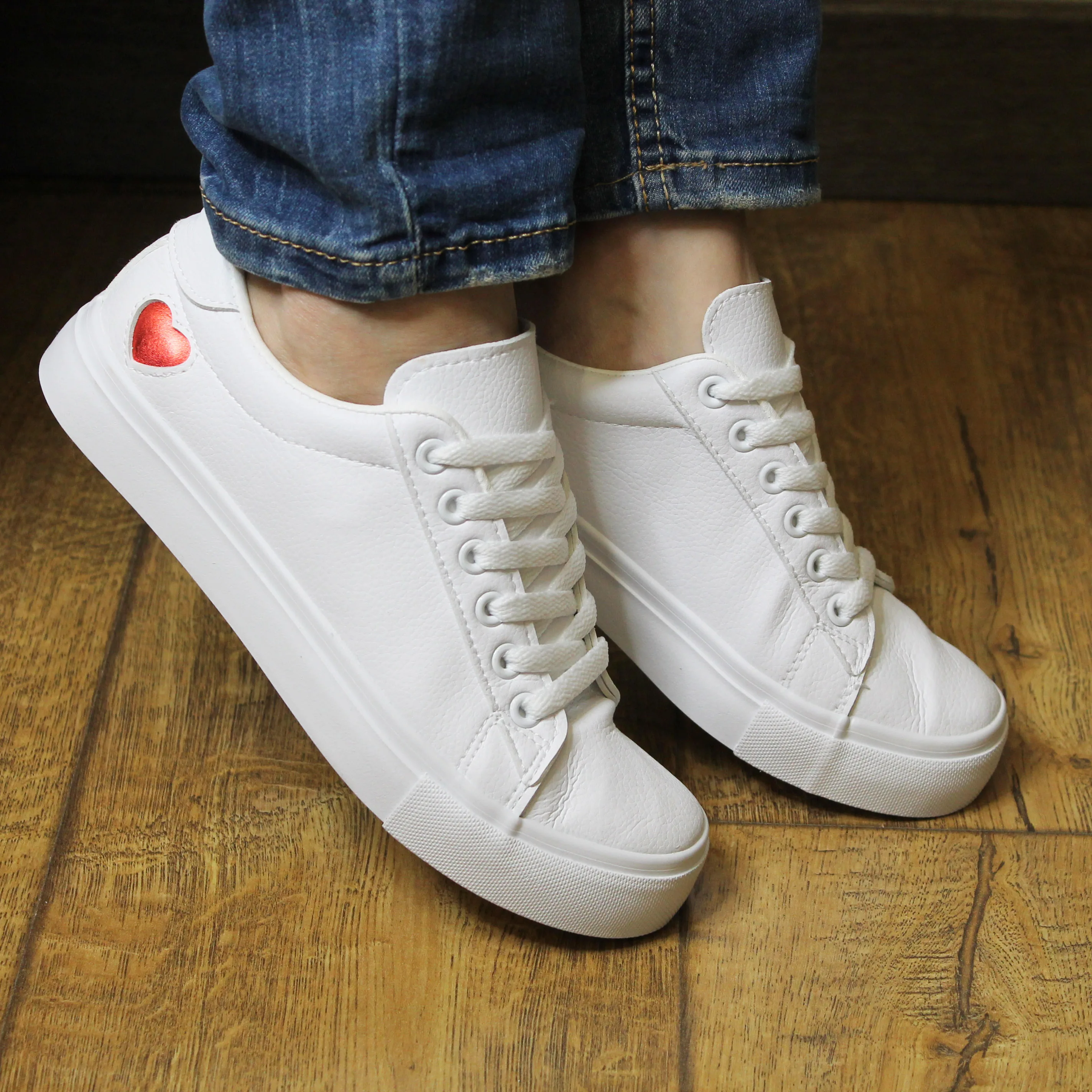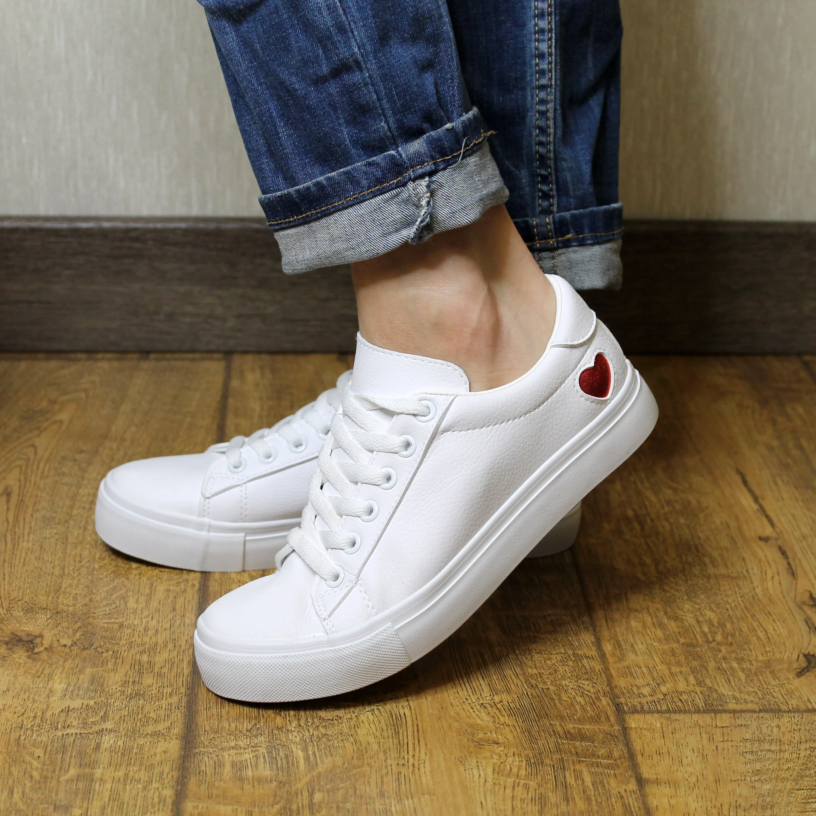 Leather Woman Shoes Fashion New Woman PU Leather Shoes Ladies Breathable Cute Heart Flats Casual Shoes White Sneakers Fashion